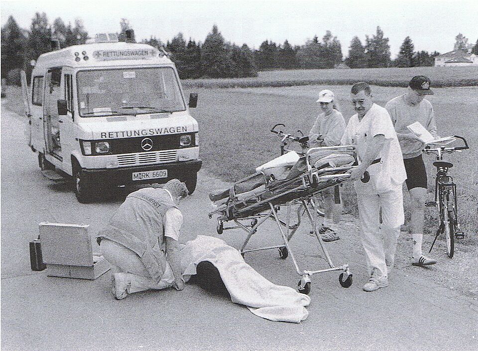 Weniger Jahre später, genauer gesagt 1995 vereinten sich die Frauenbereitschaft und die Sanitätskolonne der Männer unter dem ersten Bereitschaftsleiter Matthias Ruoff mit Stellvertreterin Astrid Horn zur Bereitschaft Grünwald. Diese Bezeichnung hält bis heute an! Kurz darauf wird wiederum durch Spenden und viel Engagement der Mitglieder ein neues Mehrzweckfahrzeug vom Typ Mercedes Sprinter beschafft und löst so den alten VW Bus nach gut 10 Jahren ab. Dieses bodenständige Auto wir heute noch als First-Responder-Fahrzeug genutzt. Ebenfalls stolz darauf sind wir die erste Bereitschaft Münchens zu sein, die sich 1999 im Internet präsentierte.